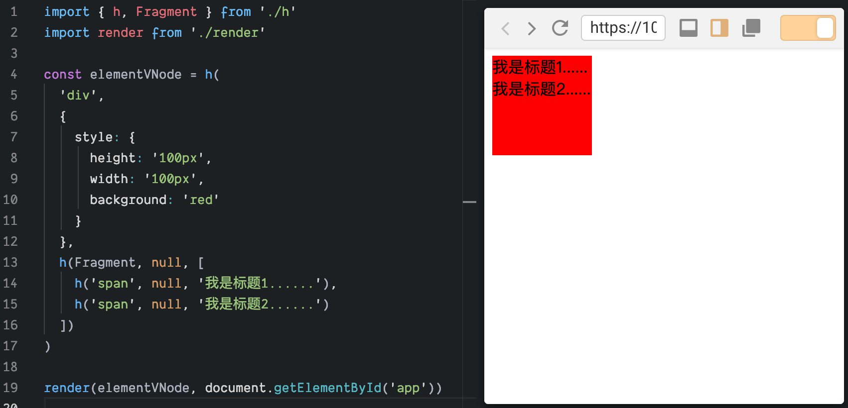 我们可以修改 elementVnode,让它的子节点是一个 Fragment。 如下: