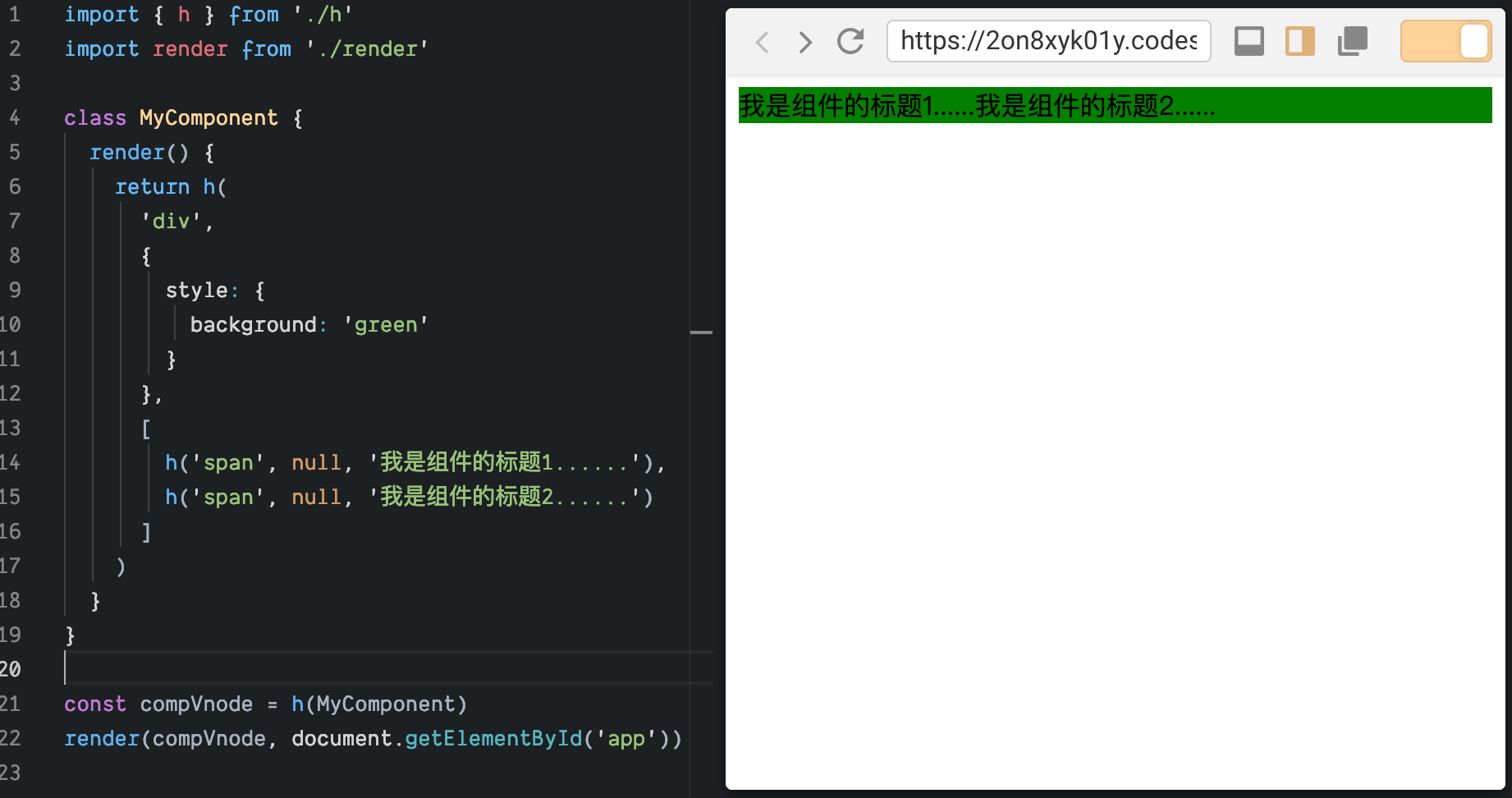 我们来测试一下我们的代码,假设我们要渲染的 VNode 如下: